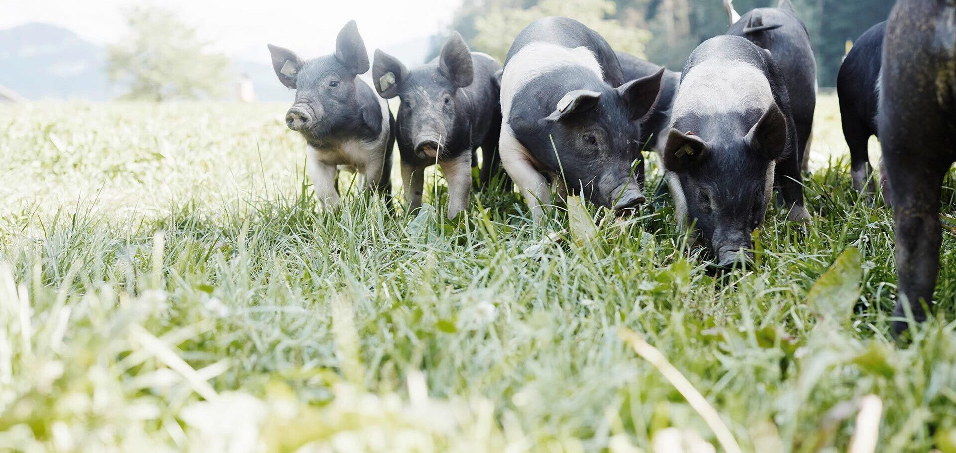 Die meisten beteiligten Betriebe halten die Schweine während der Vegetationsperiode im Freiland. Die Tiere können so ihren natürlichen Bedürfnissen nachgehen und erfüllen ganz nebenbei Funktionen im betrieblichen Kreislauf: Sie regulieren Wurzelunkräuter, versorgen die Böden mit Nährstoffen oder verwerten Nebenprodukte aus der Nahrungsmittelerzeugung.